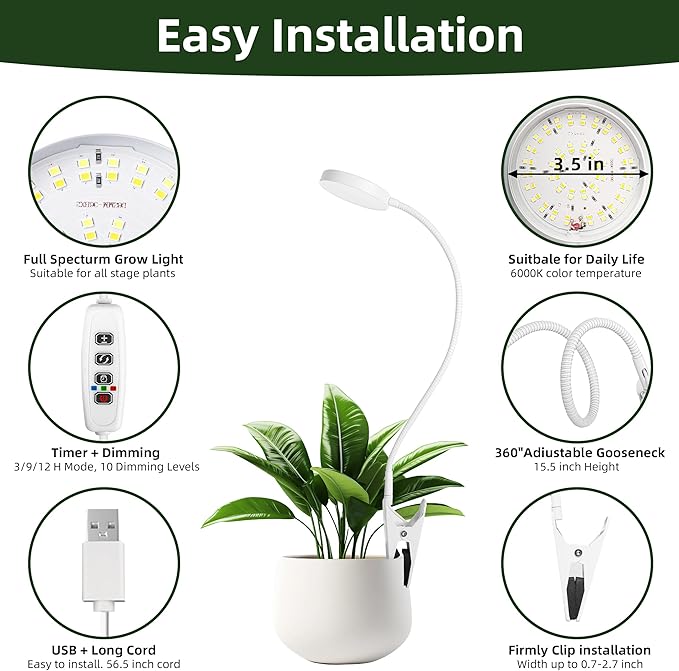 - EASY TO INSTALL: Our plant grow lights with flexible thickened goosenecks and strong clamp, can easily rotate to adjust the angle between the lamp and plants, provide the best lighting angle for your plants. The clamp of the plant grow light is designed with a non-slip pad, which can fix the plant lamp well.