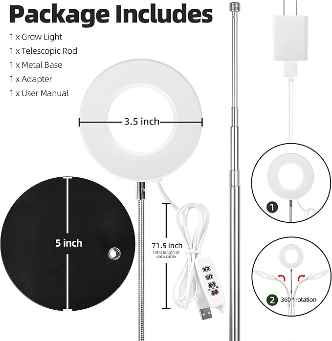 - EASY TO INSTALL: Our grow lights features a sturdy metal base with non-slip pads, ensuring stability and ease of use. You can also insert the plant light directly into the soil of the potting plant without use the non-slip pads.