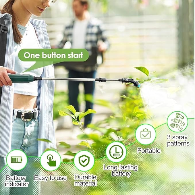 Battery Powered Sprayer Wand,Electric Plant Sprayer Telescopic Watering Wand with 16.4FT Hose,Rechargeable Electric Watering Sprayer Handle with 3 Adjustable Nozzles & Filter for Lawn, Yard and Garden