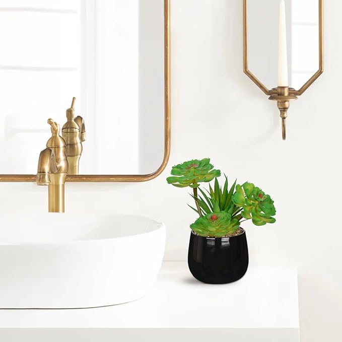 Briful Artificial Succulents Plants in Ceramic Pots, 2 Pack Faux Succulent Set with Black Planters – Modern Desk Decor for Home Office Shelf Bathroom, Small Fake Plants Potted