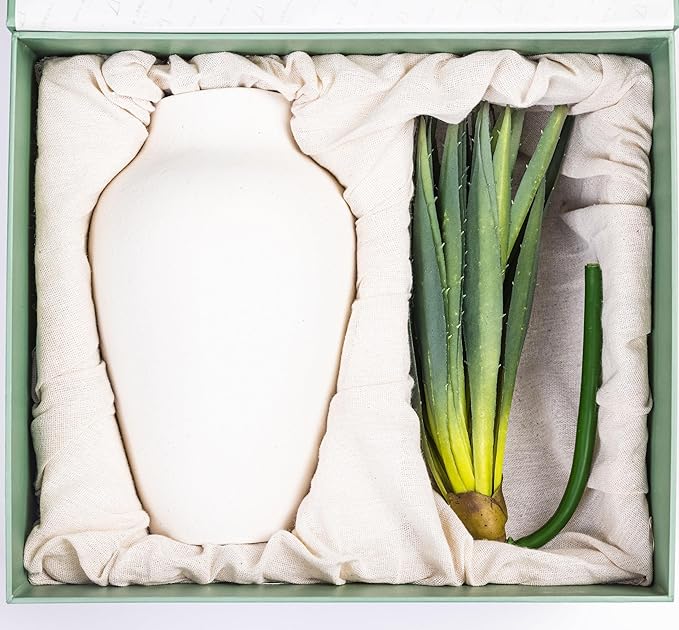 - HIGH QUALITY: Our ceramic vases are expertly crafted from high-quality, durable materials, making them a stylish and lasting addition to your home decor. Each vase features attached felt pads to protect surfaces, balancing beauty with functionality. Paired with realistic artificial aloe vera leaves, these vases introduce a refreshing touch of nature indoors, creating a soothing and elegant atmosphere in any space. Perfect for entryway decor or as stunning centerpieces, these vases and aloe vera plants elevate your space with timeless charm and effortless style.