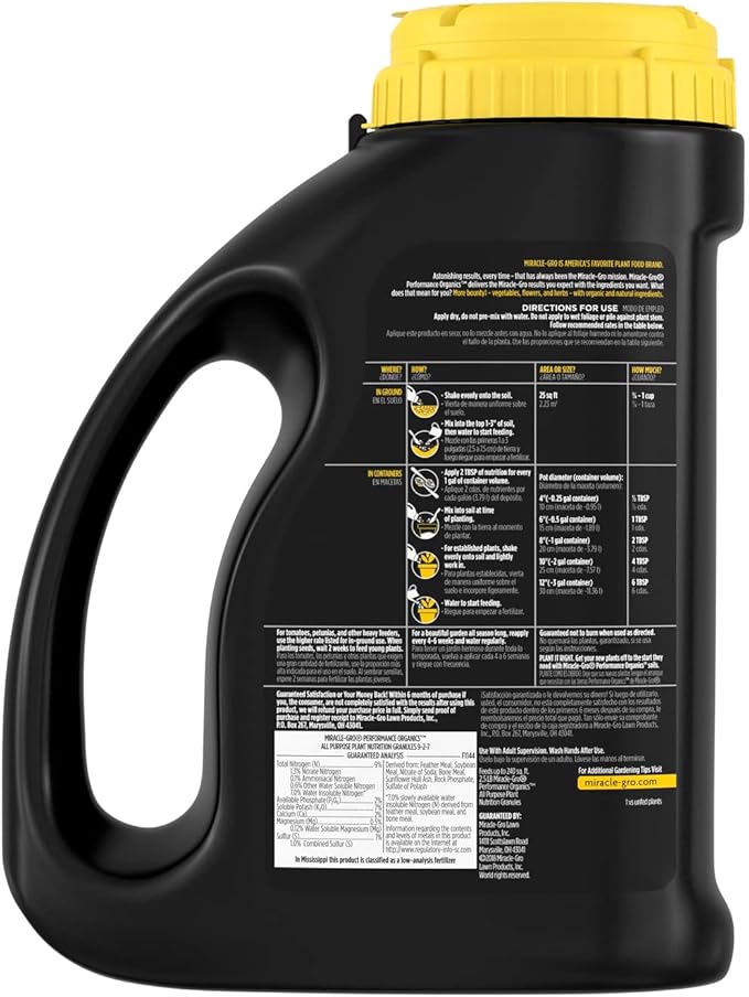 - Use Miracle-Gro Performance Organics All Purpose Plant Nutrition Granules to feed your plants, flowers, vegetables, and herbs
