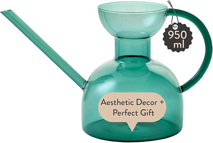 - Controlled Pouring Without Spills: The long, curved spout offers a steady, mess-free flow - perfect for watering small pots, hanging planters, or delicate greens like herbs and succulents; Unlike bulky plastic cans, this glass watering can provides better control with no splashback, making it suitable for both drought-tolerant and water-loving plants; Ideal for anyone seeking a teal watering can or compact indoor watering can for houseplants in smaller spaces