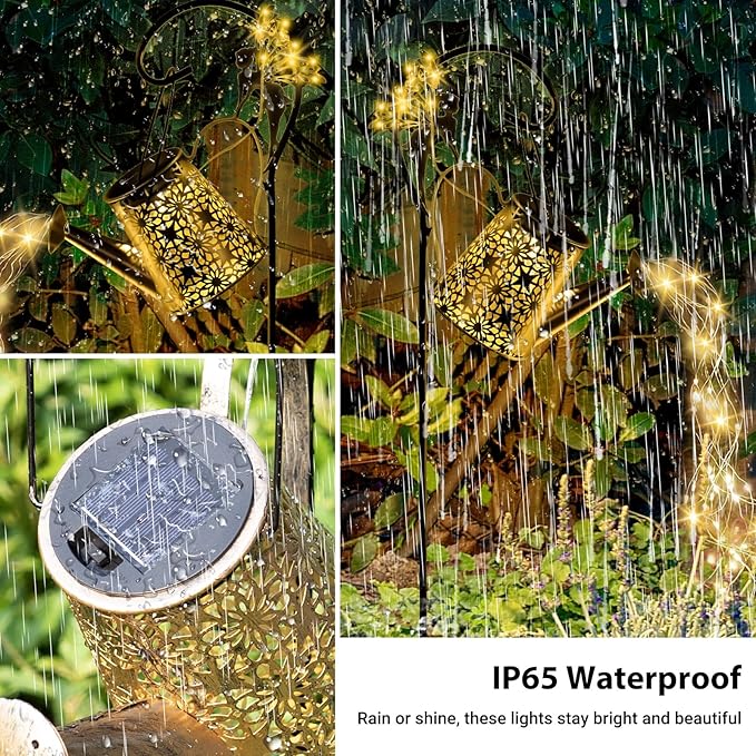 - IP65 Waterproof: Solar watering can light crafted with premium rust-resistant metal and IP65 waterproof rating. These solar lights can withstand rain, snow and extreme temperatures, making them a great choice for outdoor garden decorations.