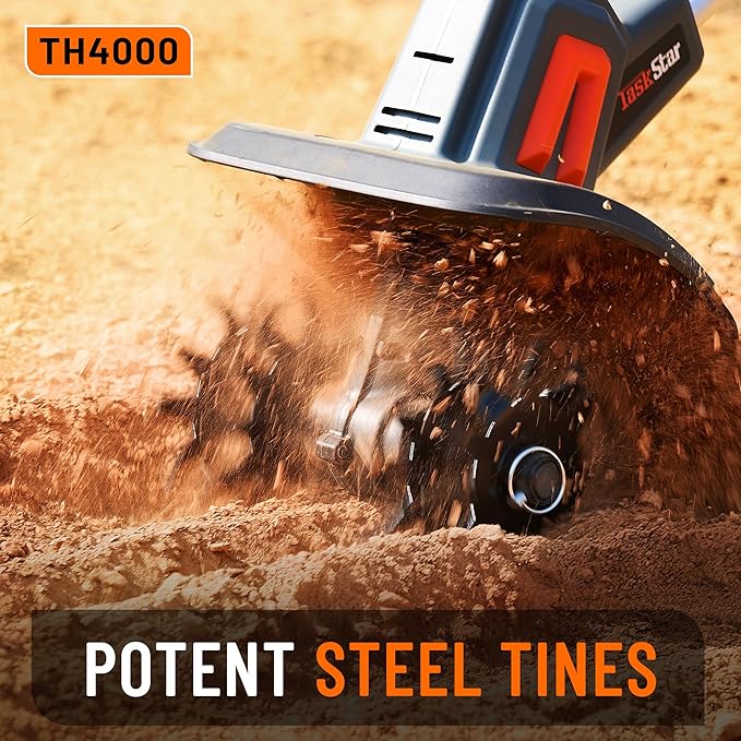 - TaskStar Fantastic Garden Gift for Your Loved Ones: TaskStar Next-Generation Exclusive electric tiller perfect for breaking ground, tending soil, mixing compost, and aerating gardens. 100% Suitable for both beginners and experienced gardeners