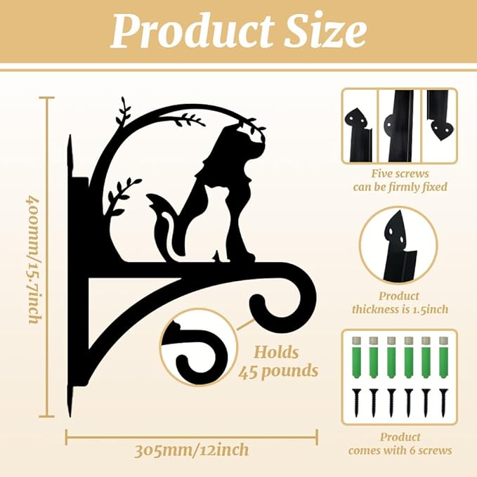 Peacoblue Iron Plant Hanger Hook for Outdoor Indoor Hanging Plant Flower Fern Pots Lantern Bird Feeder Wind Chime,12"x15.7" Weather Resistant Metal Wall Holder for Porch Garden Farmhouse(Dog with Cat)