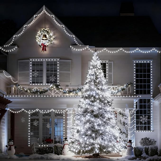 - 8 Lighting Modes: Christmas lights has 8 lighting modes (combination, in wave, sequential, slo-glo, chase/flash, slow fade, twinkle/flash, steady on). Different lighting effects are controlled by the adapter button. Change the mode as needed to attract and surprise your neighbors! Christmas lights will be a eye-catching decoration at your party.