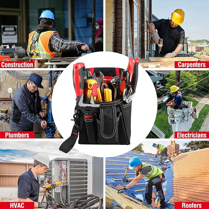 - Easy-Access:Olympia Tools tool pouch bag constructs an quick-access driver sleeves & 6 outside pockets. So, this clip on tool pouch is good electrical tools for electrician & gifts for electrician men