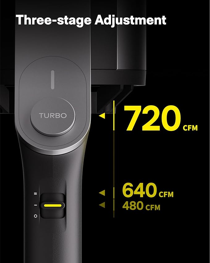 - EXCEPTIONAL POWER: Activate turbo mode to deliver up to 720 CFM with 120 MPH to power through wet leaves, caked on grass, rocks and other heavy debris. HOTO cordless leaf blower features three gears: 720/640/480 CFM to meet all your cleaning needs