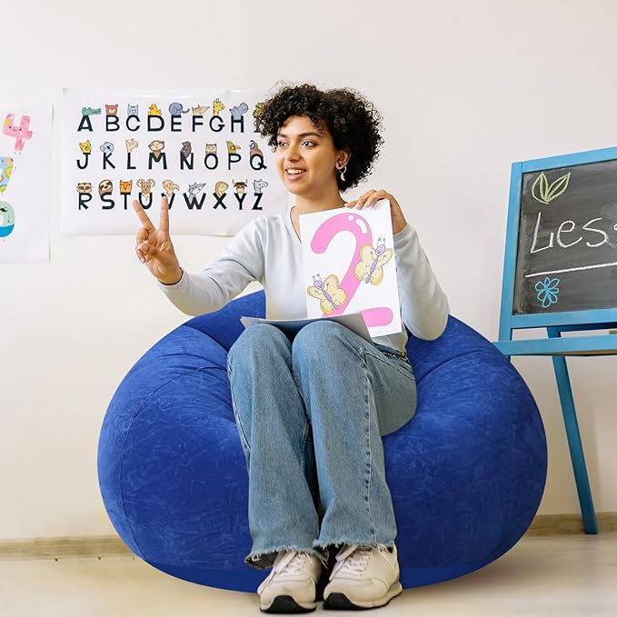 - Versatile Uses: you will get 2 inflatable bean bag chairs in 1 bright color, namely dark blue, suitable for most people; These bean bag chairs are nice for leisure, nap, sleeping, reading, movie night, backyard family gatherings, or any kind of leisure activities; Provide this bean bag for bedroom convenience to your family and bring a good mood to everyone