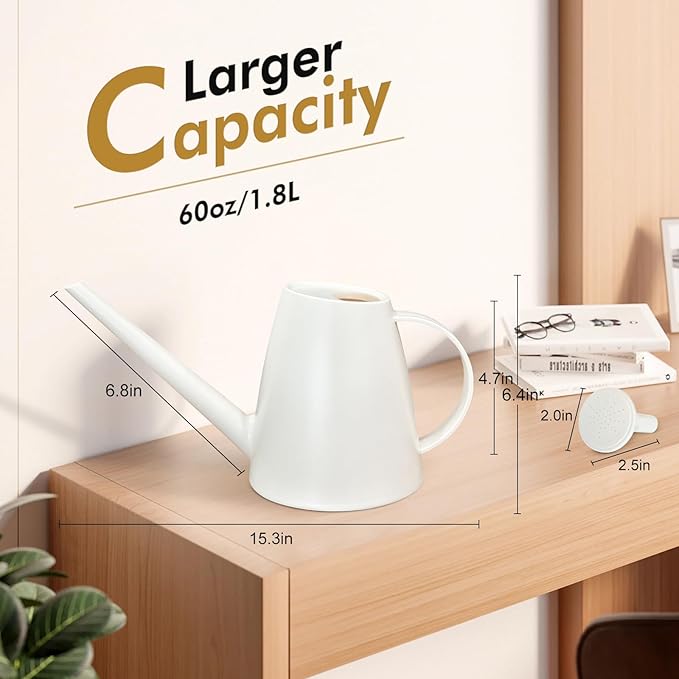 Watering Can for Indoor Outdoor Plants, Modern Small Watering Cans with Removable Nozzle, Long Spout Watering Can for Indoor Bonsai Plants Garden Flowers 1/2 Gallon 1.8L 60OZ (White)