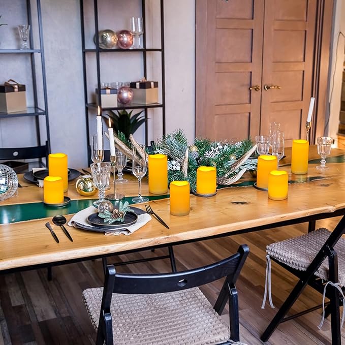 Enido Flameless Candles LED Candles Candles(D: 3" x H: 4" 5" 6") Battery Operated Outdoor Waterpoof Plastic Pack of 12 Pillar