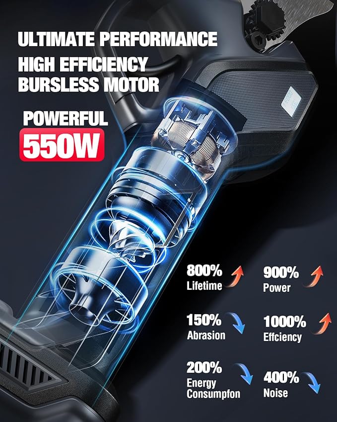 - ๐ 550W BRUSHLESS MOTOR FOR UNMATCHED EFFICIENCY: Equipped with a robust 550W brushless motor, our electric pruner effortlessly handles even the toughest branches with over 1500+ cuts per charge. From delicate trimming to heavy-duty tasks, these cordless pruners ensure powerful and reliable performance every time.