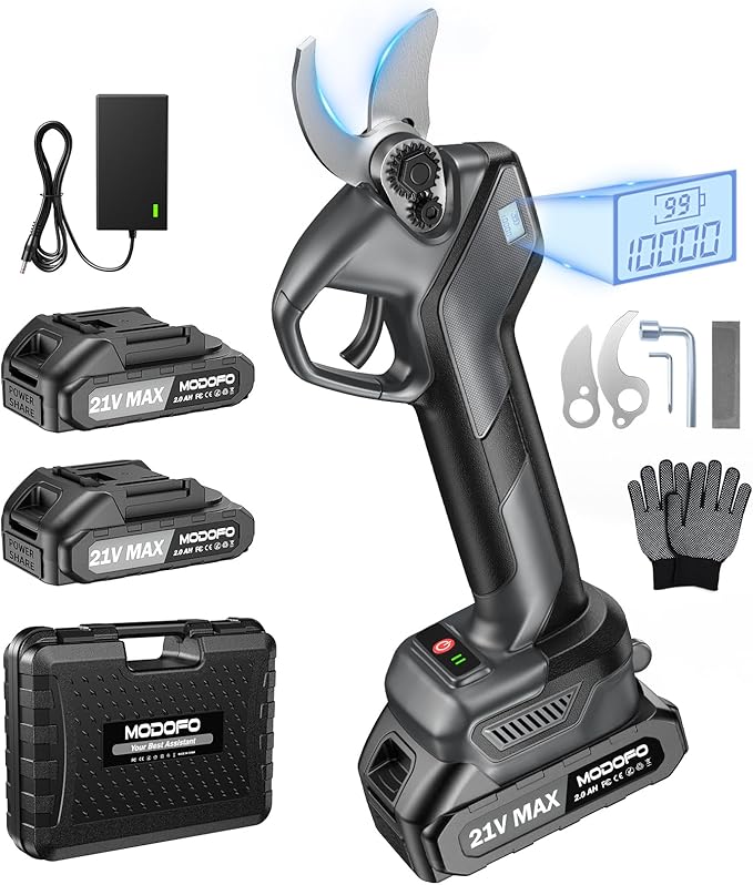 - ๐ DUAL HIGH-CAPACITY BATTERIES: Includes two 2000mAh rechargeable batteries that charge in just 1-2 hours and provide up to 4 hours of continuous use. The smart LCD display keeps you informed of the battery status, so youโre always prepared to tackle any project with these garden shears.