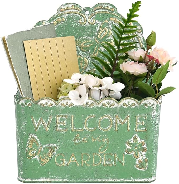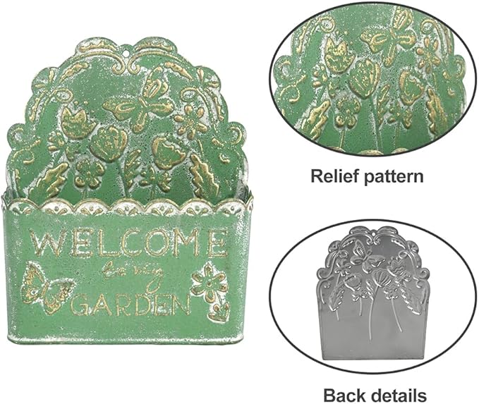 - Decorative Planter: This wall-mounted metal planter features an elegant vintage design with intricate floral patterns, perfect for adding a touch of rustic charm to your indoor or outdoor spaces.