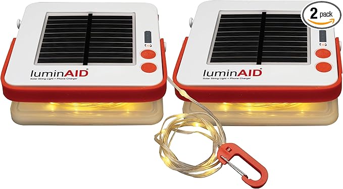 LuminAID Solar String Light with Phone Charger - Tent Lights for Camping - 32 ft Sting Lights Perfect for Camping, Backyard, Patio, RVs, Power Outages (2 Pack)