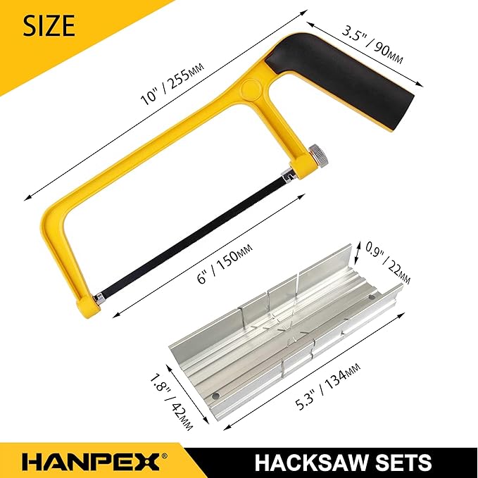 6 in. Mini Hacksaw Set - 150mm Extra Fine Cut Hack Saw Sets and 10pcs Extra Bi-Metal Blades for Wood and Metal