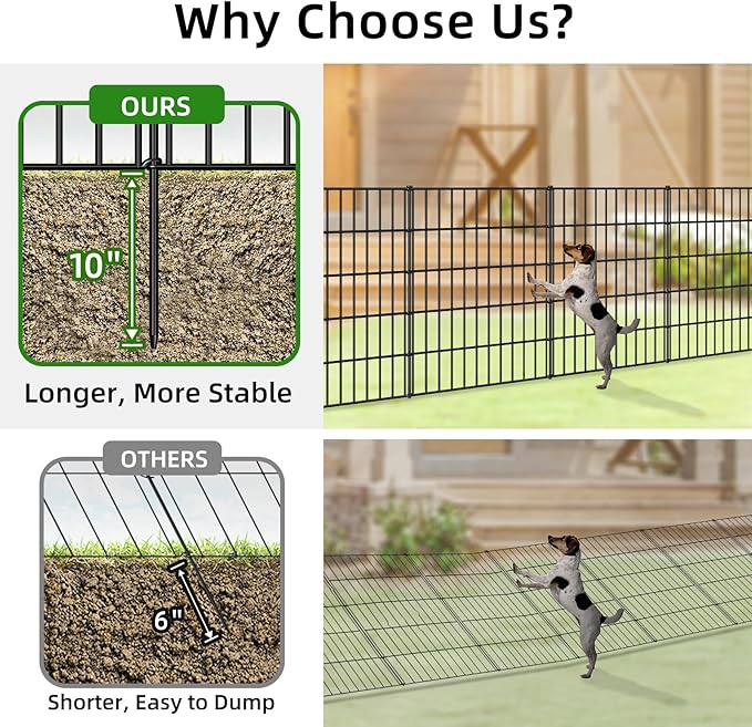 - STURDY AND STABLE: This garden fence is welded by Gauge 9 thickness iron wires, the stakes are 10mm in diameter, and can be extended pretty far into the ground which is fairly steady, it works well as a dog fence for medium size dogs.