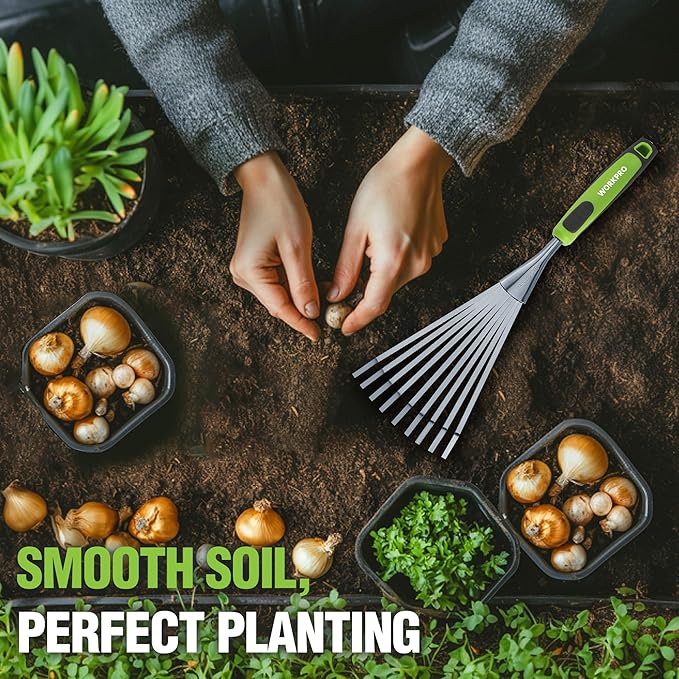 - Practical Gifts for Gardening Lovers: WORKPRO Garden hand rake is ideal for picking up leaves, cultivating, turning, and loosening soil in flower beds, herb gardens, and planter boxes. Designed for both experienced gardeners and beginners, this versatile tool ensures exceptional performance. A practical and thoughtful gift for any gardening enthusiast!