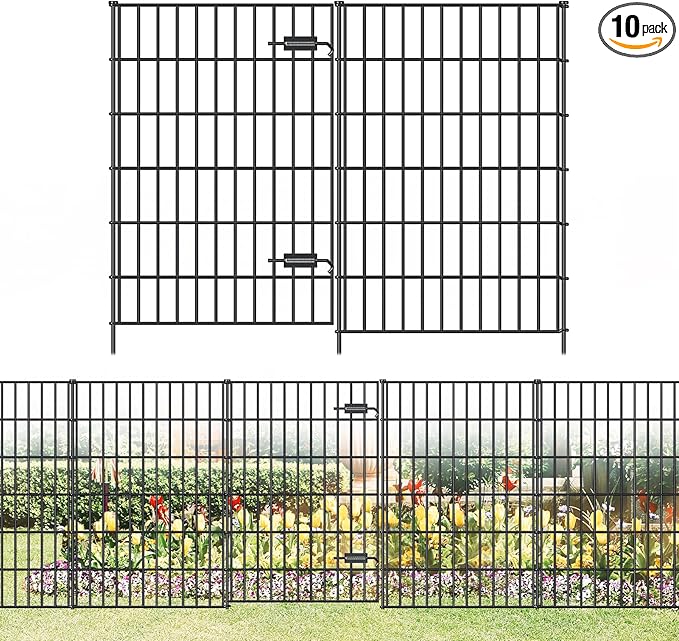 - STURDY AND STABLE: This garden fence with gate is welded by Gauge 9 thickness iron wires, the stakes are 10mm in diameter, and can be extended pretty far into the ground which is fairly steady, it works well as a garden fence border for medium or big size dogs.