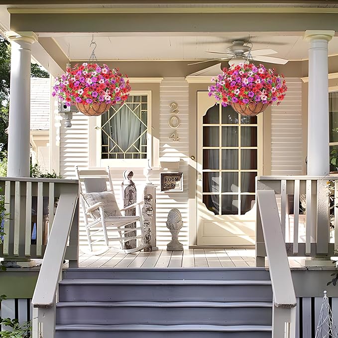- Low Maintenance:Enjoy effortless beauty—no need for watering, pruning, or weeding. Hang these faux flowers once, and enjoy a vibrant decor every year. It is great for busy homeowners or anyone looking for a low-maintenance outdoor decor.