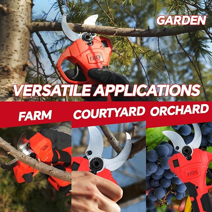 - Electric Pruners: Power Pruners Cordless adjustable blade design adapts to tree branches of different diameters, meeting different pruning needs, making you more flexible and versatile in the pruning process. Equipped with fast charging batteries, it has short charging time, long lifespan, and does not require frequent battery replacement, improving work efficiency.