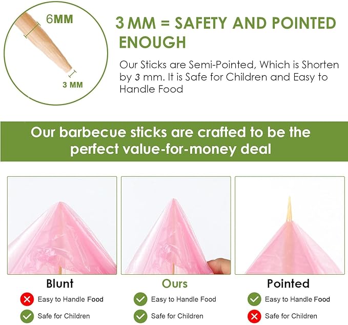 - Eco-Friendly & Disposable & No Need to Clean: Made of 100% natural bamboo material, biodegradable and environmentally friendly. After enjoy the outdoors and your time by the fire pit, who wants to clean off oils or the sticky marshmallow mess? Just toss them in the campfire , they will safely burn away,and you are done. No need to clean up as you would with standard metal skewers.