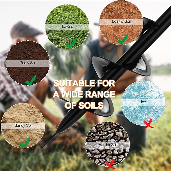 - 【Widely Application】Manual Hole Auger Drill Digger is a versatile tool that works efficiently in soft soil, sand and lawn. You can use this auger for fence posts, planting bulbs, flowers, seedlings, etc. Worked great for drill holes for your beach umbrella, outdoor tents, mailbox post, transplanted plants. The twist tiller a good tool for penetrate into the soil for your plants, allowing for easy weeding and promoting the free flow of water, air, and fertilizer for a healthier garden.