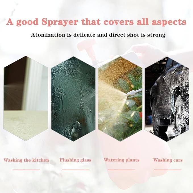 - 【Size】The sprayer is 2L/0.5Gallon/68oz Capacity. The height is 33CM/13 Inch, the bottom width is 14.5CM/5.7 Inch, and the weight is 436g/0.96Ib.(All dimensions are manually measured and may be subject to error)