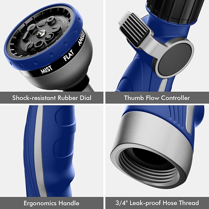 - 【10 Watering Patterns】Rotate the spray head dial to select a water pattern from Shower, Flat, Full, Mist, Jet, Center, Cone, Angle, Vertical, and ½ Vertical. Whether you need the high-pressure jet to clean your window, the useful angle to wash your car, the gentle shower to clean your shrubs, or the soft mist to water your hanging baskets, the 10 patterns have you all covered.