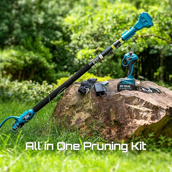 - 【2-in-1 Pole Pruner for Extended Reach】Switch between handheld and pole modes with the Seesii electric pruner. The extendable pole extends from 4.9 to 9 FT, offering up to 15 FT of reach to safely trim high branches from the ground—no ladder needed for quicker, easier tree care