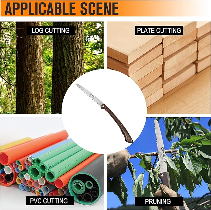 - ✅【Versatile Multi-functional Folding Pruning Saw】 This hand saw is perfect for tree cutting or as a folding saw for camping. It's a versatile and reliable tool suitable for a wide range of outdoor tasks, including pruning shrubs and trees, hiking, tree trimming, garden work, landscaping, and more