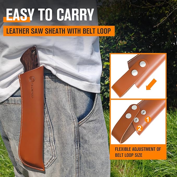 - ✅【BROEN LEATHER SHEATH FOR PORTABILITY】This compact woodworking hand saw comes with a brown leather sheath featuring two adjustable buckles on the rear for personalized fit and comfortable wearing. The sheath ensures easy portability, making this tree-trimming survival silky saw accessible wherever you go