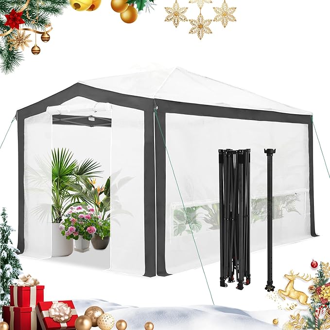 - EASY SETUP: This easy setup pop up greenhouse plant tent features the Peak Push system, a patented greenhouse center lock. The portable greenhouse requires no tools and easily opens and closes from the center in seconds. Its unique greenhouse center lock enables a quick, one person setup, letting you maximize gardening with minimal effort
