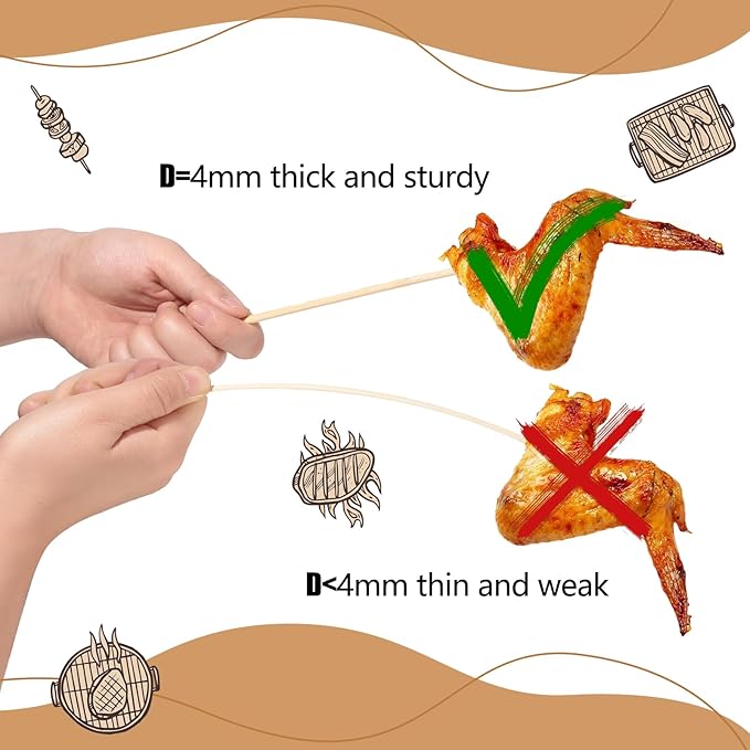 - 【Widely Used】The skewers can be used for marshmallow, hot dogs, sausages, kebabs, roasting,and also suitable for plant stakes,garden sticks,plant supports,floral picks,crafts and much more.