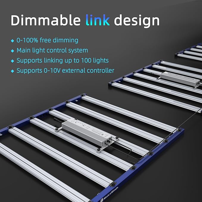 - 【Quiet and light】MaiceMinds MC680 grow light aluminum fins to dissipate heat, which increases cooling efficiency by 300%, and you can still enjoy efficient cooling without fan noise.The MaiceMinds MC680 plant light is fully modularized and modules can be replaced at any time to extend its service life.