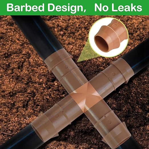 - Includes: 10 Pcs of 1/2-Inch Drip Irrigation Cross Tee Barbed Connectors – the perfect solution for customizing your drip irrigation layout. Seamlessly connect and configure your irrigation tubing to fit your garden's unique design