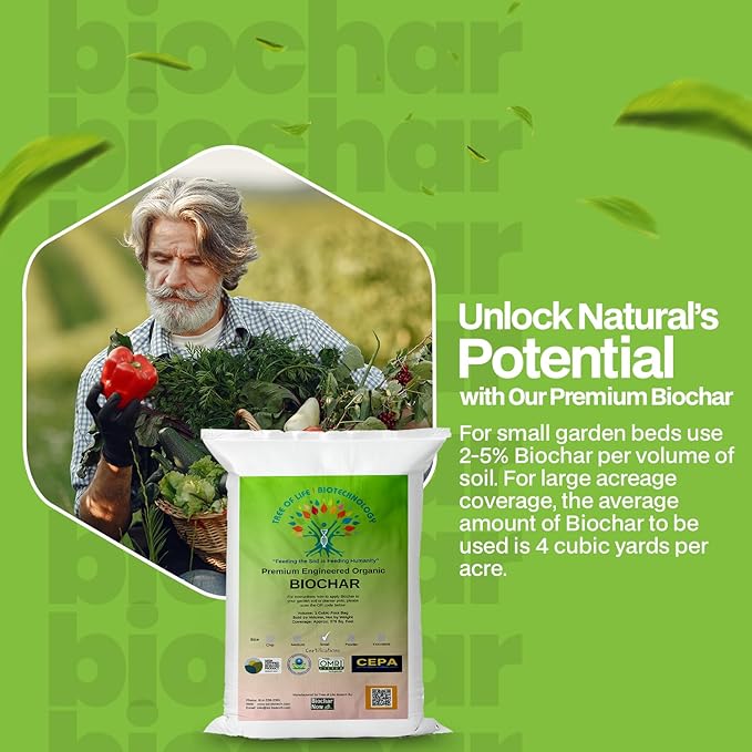 - Certified Biochar for Garden Soil: Produced sustainably from wood waste, our Biochar chip enhances garden soil, potting mixes, and raised beds. It is the only US-based Biochar for plants with USDA Bio-Preferred, EPA, CEPA (Canada) and OMRI organic certifications, ensuring a safe and Eco-friendly soil amendment for vegetable gardens, crops, orchards, and landscaping projects.