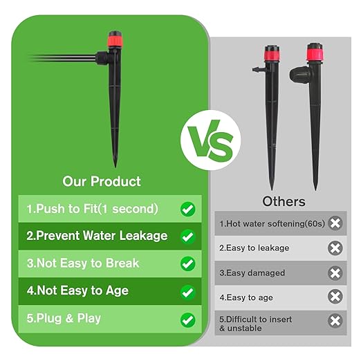 - 【Easy to Use】Drip Irrigation Emitters for 1/4" Drip Irrigation Tubing, is perfect for Garden Irrigation with (4-7mm) Watering System. No need to heat irrigation tubing, easily connects directly to drip irrigation emitters. The drip irrigation heads are removable and easy to clean without worrying about clogging.