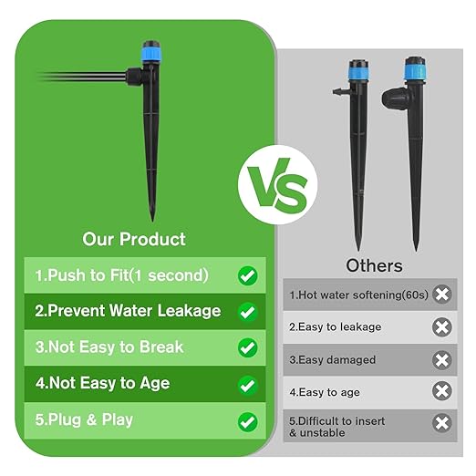 - 【Easy to Use】Drip Irrigation Emitters for 1/4" Drip Irrigation Tubing, is perfect for Garden Irrigation with (4-7mm) Watering System. No need to heat irrigation tubing, easily connects directly to drip irrigation emitters. The drip irrigation heads are removable and easy to clean without worrying about clogging.