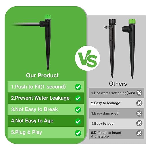 - 【Easy to Use】Drip Irrigation Emitters for 1/4" Drip Irrigation Tubing, is perfect for Garden Irrigation with (4-7mm) Watering System. No need to heat irrigation tubing, easily connects directly to drip irrigation emitters. The drip irrigation heads are removable and easy to clean without worrying about clogging.