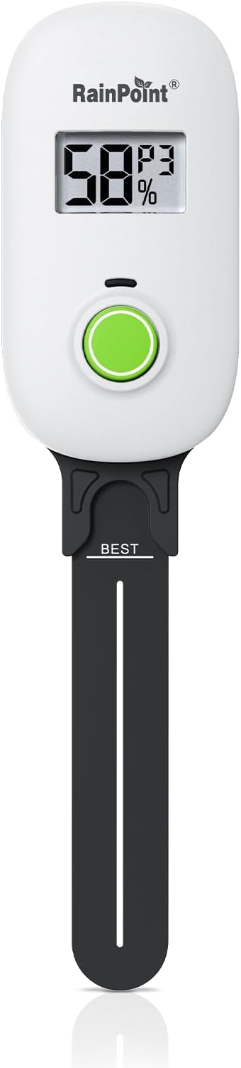- 【🚀Capacitive Probe】Unlike traditional resistive probes which are prone to rust causing resuced accuracy, our RAINPOINT high-precision soil senor maps moisture with a long-lifespan capacitive probe. Easily know your pothos is thirsty before it droops, or your peppers need a drink without digging.