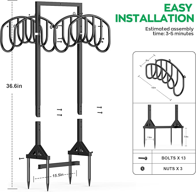 - 【Upgraded 4-Anchor Base for Rock-Solid Stability】 Featuring 4 reinforced spikes (2.5cm longer than others), this hose stand resists wobbling even on uneven terrain. Ideal for outdoor hose storage in yards, gardens, and driveways.