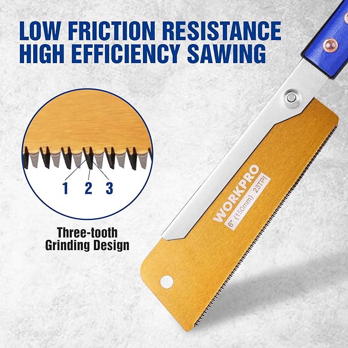 WORKPRO 6 Inch Japanese Pull Saw, 23 TPI SK5 Flexible Blade Dovetail Saw with Non-Slip Beech Handle for Dovetails, Tenons and Precision Woodworking