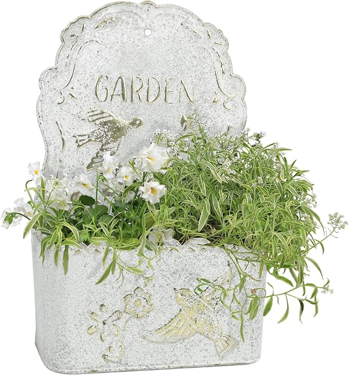 BIG FORTUNE Metal Wall Mount Planter Wall Vases for Flowers Shabby Chic Decor for Rustic Farmhouse Outdoor Decor (White)