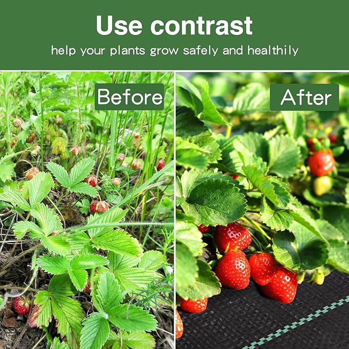 - 【Easy to Cut and Install】Our weed blocker fabric heavy duty is effortless to cut and install. It is convenient to DIY the cloth size and shape to meet your different needs. The garden cloth weed barrier also features green stripes for easy plant alignment. (Installation tools are not included.)