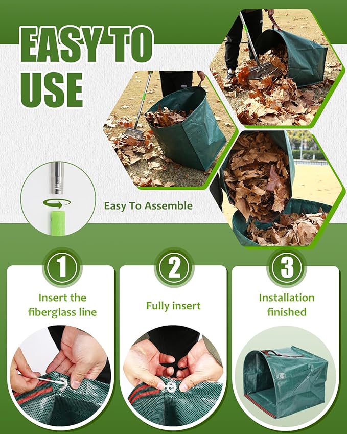 - Essential Leaf Rake Set: This garden rake set includes a 65-inch rake for leaves, a 40-gallon dustpan-typ leaf bag; With these tools, you'll be equipped to handle all your gardening tasks, making yard and garden cleanup a breeze.