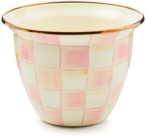 - ELEGANT GARDEN ESSENTIAL: This indoor or outdoor pot is rimmed in bronzed stainless steel and features our pretty hand-painted pink-and-white Rosy Check pattern. It matches any decorative theme to dress up your home garden or living-room blooms.