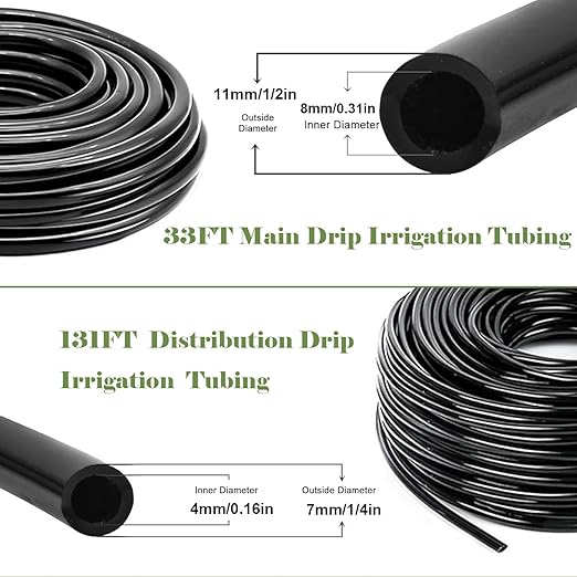 - 164FT DRIP IRRIGATION KIT: The garden watering for plants system kit include 33FT main tubing (1/2"),131FT distribution tubing (1/4"), it comes with totally 302 parts and we offer enough accessories for you to build up 3 sets small drip irrigation systems or 1 set garden watering system