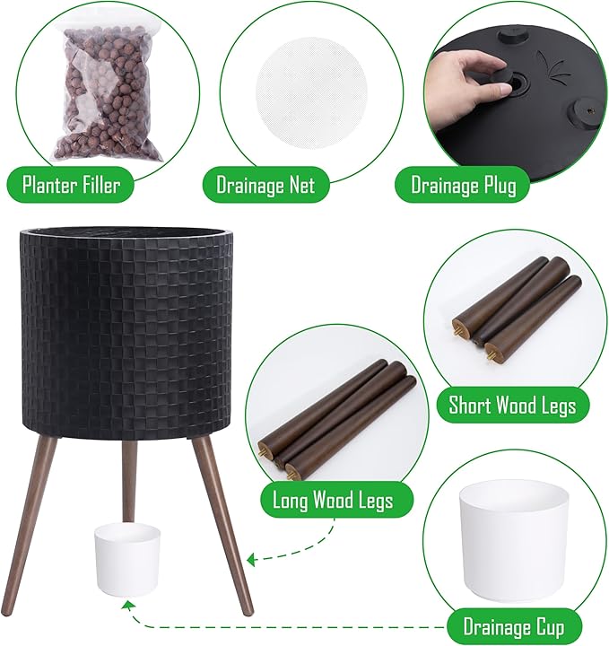 - Sturdy Wooden Legs: Supported by sleek wooden legs, this planter offers a stable base and enhances its overall aesthetic appeal.